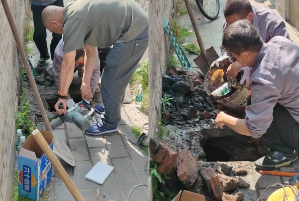 前不久,社区东院4排胡同水井下水管突发跑水。社区工作人员第一时间赶赴现场,确认是表后入户水管老化锈蚀开裂,该情况不属于自来水公司维修范围,立即联系“益企帮”成员单位仕邦博睿物业。水暖工抵达现场后,发现雨水井口狭窄无法直接作业,便当场制定“破拆地面—更换管道—恢复路面”方案。从破拆管道到更换新管,再到混凝土浇筑恢复路面、加装防滑井盖,仅用4个半小时就解决问题,既保障了居民用水,也消除了出行安全隐患。