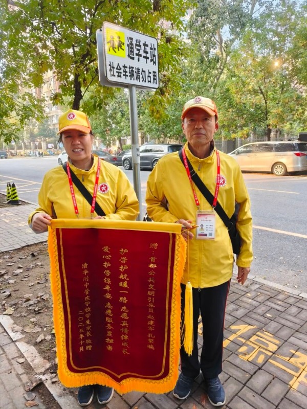 长期以来,以赵建军、孔繁晓为代表的朝阳区“柠檬黄”公共文明引导员,始终以高度的责任感与使命感坚守护学岗位,用实际行动为校园周边筑起安全防线。他们的辛勤付出不仅赢得了清华附中管庄学校师生与家长的一致好评,更成为朝阳区文明建设中一道温暖的风景线。