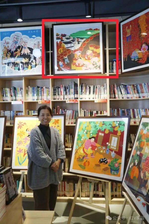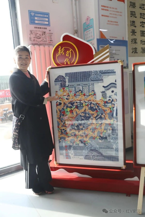 展厅内,一幅幅作品主题鲜明、风格多样,吸引着观展者驻足品鉴。小红门地区书画协会会长董春明创作的《卜算子·咏梅》笔力遒劲,李万作的书法作品以笔墨致敬抗日战争胜利80周年,传递红色精神;李桂霞的《舞龙迎春》展现传统民俗活力,邱金红的《晒秋》用奔放色彩勾勒农家喜悦,白月芬的《农业科技园》记录采风趣事,党淑军的《冬藏》饱含北方生活烟火气,王淑琴的《追逐梦想》则以“丰”字风筝寄托幸福期盼。其中,由数位书画爱好者联袂创作的《我的家乡》曾亮相“2025年朝阳区中国农民丰收节”,作品生动呈现小红门地区的发展变迁,让观展者深入了解了地区风土人情与文化特色。