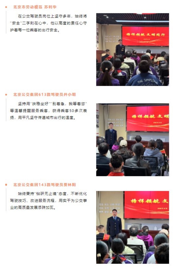 为深入弘扬榜样精神,凝聚区域文明力量,10月17日,朝阳区新时代文明实践中心办公室联合北京公交集团客一分公司,在公交客一分公司新时代文明实践基地共同举办“榜样领航文明同行”主题文明实践活动。活动以沉浸式体验结合深度互动的形式,让中国好人、北京榜样、朝阳群众好榜样代表与清华大学附属中学朝阳学校师生、基层社区干部等群体近距离接触,推动榜样精神在校园落地、在社区扎根。