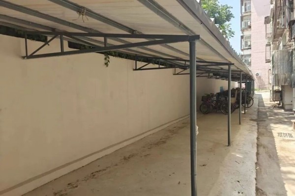 此前,大山子社区七号院的非机动车车棚因年久失修,存在破旧漏雨、环境脏乱等问题,不仅影响小区整体风貌,更暗藏安全隐患,给居民生活带来诸多不便。为切实解决这一民生痛点,酒仙桥街道指导大山子社区党委充分运用党组织服务群众经费,以“安全优先、文化赋能”为核心思路推进车棚改造,通过规范非机动车停放秩序、优化空间布局,让老旧车棚焕然一新,显著提升了居民的归属感与幸福感。