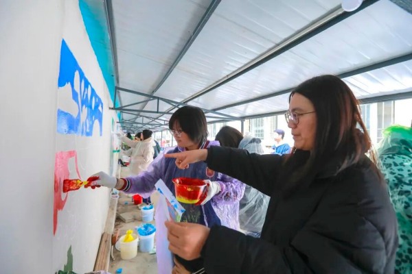 作为酒仙桥街道“共朝美好久爱新桥”党建品牌建设的重要组成部分,此次墙绘活动依托社区“星耀五暖”党建品牌优势,深化校社共建机制,将高校美育资源与社区治理需求精准对接。社区与学校经过多次沟通,确定以“邻里和睦文明社区”为创作主题,组织学生围绕规范充电、志愿服务、邻里共融等新时代文明实践理念进行创作。活动现场,社区提前做好全方位后勤保障,分类摆放画笔颜料、准备防水围裙与暖心热饮,为师生创作保驾护航。同学们化身“小艺术家”专注勾勒彩绘,社区工作人员全程协助配合,一幅幅充满创意的作品不仅美化了30米长的空白墙面,更将文明理念融入社区环境肌理。