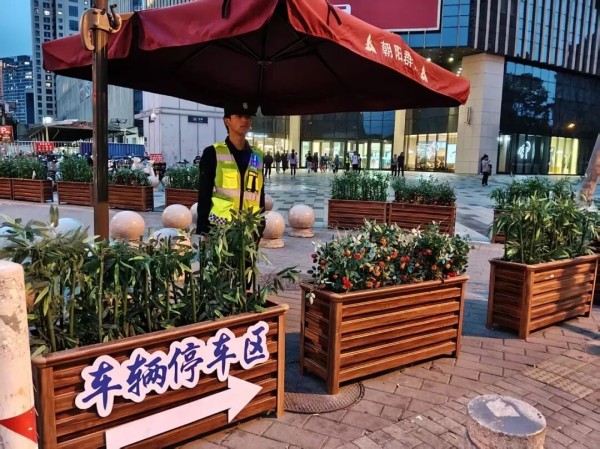 为破解这一治理难题,太阳宫地区平安办牵头,坚持问题导向,针对不同地铁站点和重点区域的特征开展实地走访研判,推出一系列“对症下药”的治理举措。在队伍建设方面,组建14人的专业秩序维护队,在凯德·Mall、地铁太阳宫站、地铁芍药居站等核心区域实行“定点值守+动态巡查”模式,早晚高峰时段重点加强车辆规范停放引导和即时整理,确保出入口畅通有序;同时,通过增设清晰停放指示标志、用景观花箱替代传统隔离栏等细节优化,既有效遏制违停行为,又美化了周边环境,实现车辆与行人“各行其道”。