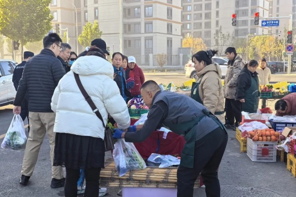 与此同时,在朝阳壹号、东岳府、保利锦上一期二期等配套设施尚在完善的小区,居民们也迎来了“新鲜福利”——满载时令蔬果的蔬菜直通车正式进驻孛罗营中路附近,让居民不出小区就能买到新鲜菜。