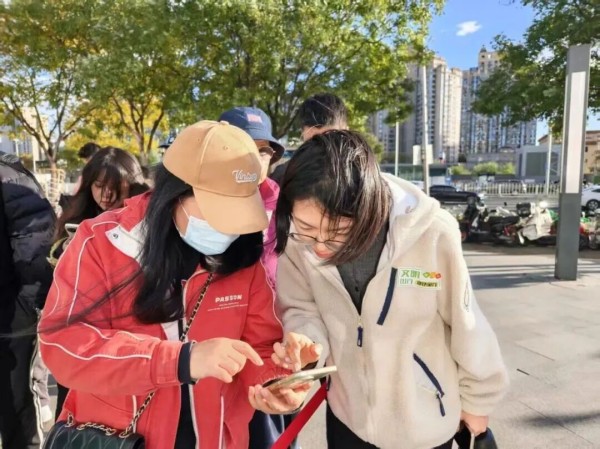 活动设置多重互动环节,让文明养犬知识“玩”中学。市民扫描现场海报二维码关注“文明北京”微信公众号后,即可参与线上答题,题目聚焦遛犬拴绳规范、犬便清理要求、陌生犬只接触礼仪等实用内容,兼顾知识性与实操性。答题过程中,不少市民与家人、朋友相互探讨,现场俨然成为生动的文明养犬知识课堂。凡是答对5道题的参与者,均可获得免费套圈机会,套圈区域陈列的宠物牵引绳、宠物礼盒、文明养犬宣传品等丰富礼品,让大家在收获快乐的同时,加深对文明养犬规则的记忆。