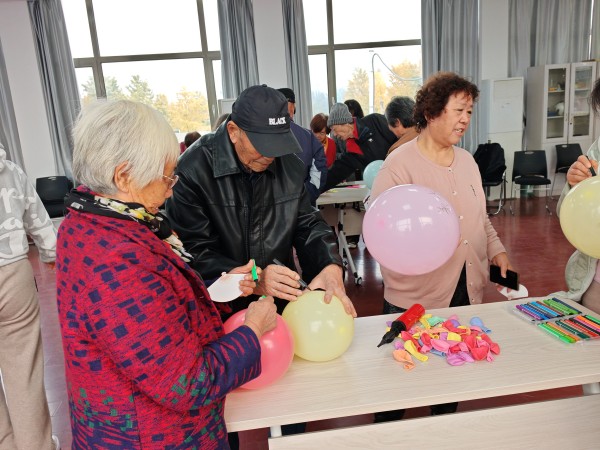 “我要写‘婚事简办,省钱又省心’”“我来写‘文明祭扫,绿色缅怀’”新风气球绘制环节的桌子上,摆满了五颜六色的气球、马克笔和展板——参与者先挑选空白气球,在社工的引导下,认真写下“婚事简办”“丧事简办”“文明风尚”等新习俗标语,再将写好的气球粘贴到主题展板上,组成一幅“文明新风墙”。只要完成1条文明标语的书写与粘贴,就能获得第三枚“文明印章”。现场居民们低头专注书写,笔尖落下的不仅是文字,更是对文明新风的认同;一幅幅色彩鲜艳的气球墙,成了活动现场最亮眼的“文明风景线”,大家用笔墨传递对新习俗的支持,让文明理念看得见、记得牢。