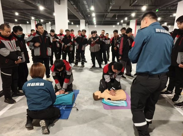 随后开展的应急培训,紧密围绕送餐实际场景展开。从醉酒昏迷的初步应对、交通事故外伤处理,到高温中暑的预防与急救。到了灭火器使用、心肺复苏、海姆立克急救法等实操环节,骑手们更是全神贯注,紧盯教官的每一个示范动作,并轮番上前练习。