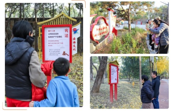 据了解,高碑店地区以兴隆公园原有游览步道和绿化景观为基础,将宪法、民法典等核心法律内容通过景观小品、主题宣传栏、地面标识等多种形式巧妙呈现,既保留了公园原有的生态景观优势,又赋予其丰富的法治文化内涵。漫步公园内,法治元素与自然景致相得益彰,使"尊法、守法、学法、用法"的理念以潜移默化的方式融入居民日常生活。
