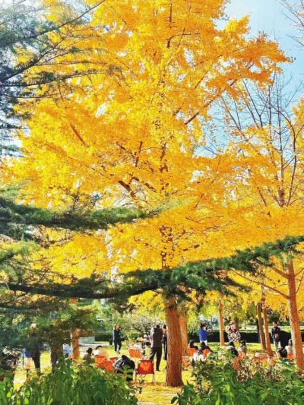 银杏林飘出咖啡香,是北京初冬的限定打开方式。亮马河郡王府码头旁的银杏林,金黄叶片簌簌落下,地面积起一层“金色绒毯”,初冬的柔和阳光配上满眼金黄,为闲适午后更添几分暖意。