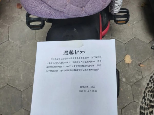 除了邻里间的温情互助,王四营地区居民的安全意识与责任担当,也让寒冬里的安全感倍增。11月15日下午,百湾家园二社区一位热心居民在10号楼附近巡查时,发现一辆正在充电的电动车充电器出现故障,存在明显安全隐患。他第一时间联系社区居委会和物业服务中心,详细说明现场情况。