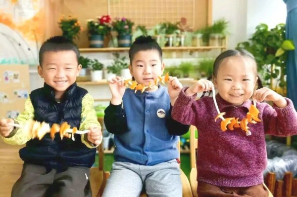 在朝阳区教育国资中心幼儿园,"秋天作伴童享自然"主题活动同样精彩纷呈。孩子们动手串起山楂、红枣组成的"丰收串",在阳光下晾晒柿子、花生等秋日果实,在触摸自然、感受丰收的过程中,循着季节节律快乐成长。