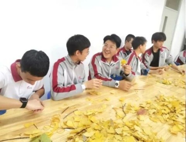 北京中学商务区实验中学则以落叶为核心载体,开展"落叶重生记"手工创作活动。金黄的银杏叶在学生手中经过剪裁、拼接、粘贴等工序,蜕变为一朵朵精致的手工花。该校教师表示,活动不仅锻炼了学生的动手能力,更让大家在创作中读懂自然循环,树立起对生命的敬意与珍视。