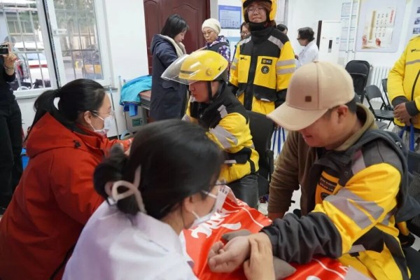社区的温情关怀更体现在对新就业群体身体健康的守护上。活动现场,社区特别邀请固生堂中医院组建“新就业群体后援队”,为骑士们发放免费体检卡,并开展血压测量、中医问诊等义诊服务,细致解答职业健康相关问题,为他们的辛勤奔波保驾护航。