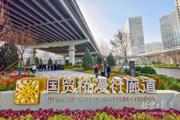 繁忙的东三环国贸桥下,一条南北长1.1公里、宽8米的花园廊道正式亮相,为国贸地区的通勤人员、周边居民提供休闲漫步场所。与此同时,通过桥下空间整合重塑,国贸桥区部分路段车道数量增加,路口高峰期机动车流量最高增幅达36%。
