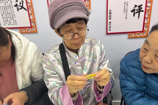 近日,双井街道黄木厂社区联合辖区志愿者,以非遗手工为纽带,举办了宋锦挂件制作活动,为社区老年群体送上暖心关怀。