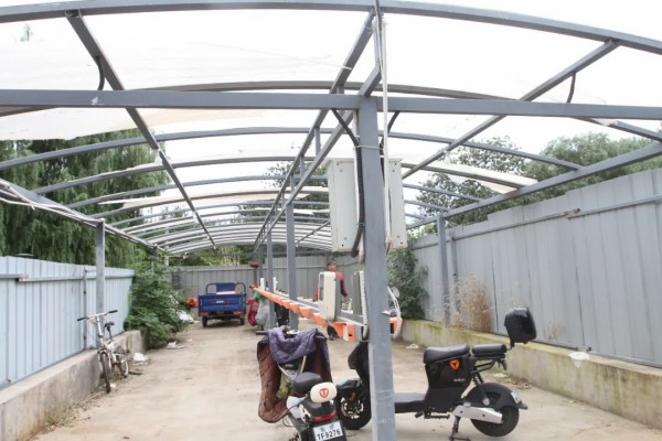 始建于上世纪80年代的751平房区,原为某国营工厂集体宿舍,如今常住居民多为出租户,电动车是大家日常出行的主要交通工具。4年前建成的充电棚因选址在平房区围墙外东侧村尾,距离村口约100米,居民往返充电耗时费力。加之常年日晒雨淋,棚顶塑料阳光板大面积脱落,不仅存在消防安全隐患,40个充电端口在高峰时段也难以满足集中充电需求。今年以来,不少居民通过社区议事渠道提出诉求,希望对老旧充电棚进行改造。