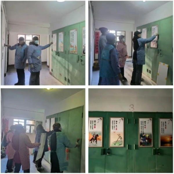在美化环境的基础上,如何让楼门更有“内涵”成为新的课题。通过议事协商,队员们达成共识:打造特色楼门文化。手绘的二十四孝故事、蕴含哲思的成语典故、展现国粹魅力的艺术作品……一块块精心设计的宣传板陆续“上墙”,让原本单调的楼道变成了“文化长廊”。2025年,队伍再次升级楼门文化,将宣传板主题更新为“中国古诗词欣赏”,精选多首经典诗作,其中不乏语文教材中的篇目。“希望孩子们放学回家,能在楼道里温习诗歌,让文化熏陶无处不在。”张兵笑着说。