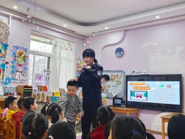 针对低龄儿童的认知规律与接受特点,民警则切换宣讲模式,通过趣味讲故事、互动问答等孩子们喜闻乐见的方式,通俗讲解了过马路要走人行道、正确识别交通信号灯、不随意横穿马路等基础交通安全知识。期间,民警还邀请老师共同示范安全过马路的标准动作,让孩子们在轻松愉快的互动氛围中直观掌握出行常识,加深对交通安全的理解与记忆。