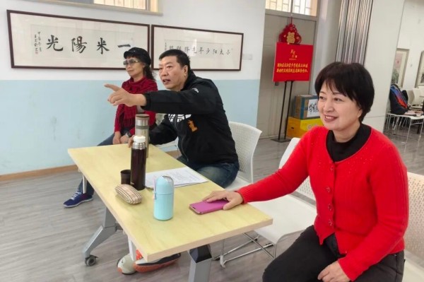 “红叶阳光”剧社成立于2024年11月22日,名字寓意着秋日暖阳下的生命活力,承载着全体成员“演绎生活、服务邻里”的初心。不同于专业剧团,剧社30余名成员均是毫无表演经验的普通居民,涵盖老年、中年等多个年龄段。为让这群“戏剧小白”自信登台,剧社打造了金牌“领航组合”——导演王春生从台词情绪、肢体语言等细节入手,手把手指导社员将生活经验转化为表演技巧;社长吴仁淑则化身“暖心大家长”,通过茶话会、分享会等形式拉近社员距离,及时疏导怯场情绪,让原本陌生的邻里在排练中逐渐成为默契搭档。