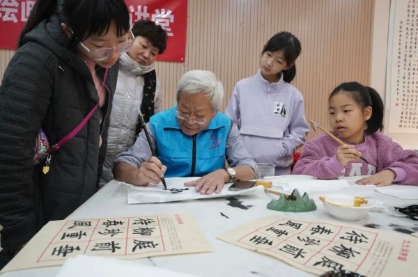 与此同时,安贞书院活动室内一场传统文化体验活动同步开展。街道关工委邀请的书法爱好者“五老”志愿者,正耐心向孩子们讲解冬至来历、“数九”习俗及“九九消寒图”的文化寓意——自冬至起每日描画一笔,历经八十一日完成画作之时,便是春风送暖之际。孩子们听得津津有味,在志愿者指导下,手持毛笔认真填写“亭前垂柳珍重待春风”九画字,笔墨流转间,既沉浸式感受了传统节气文化的独特魅力,更在老幼互动中让敬老爱幼的美德悄然传承。