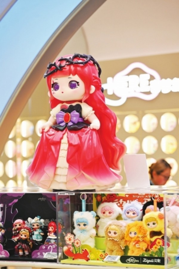 记者看到,奇梦岛店内陈列独具匠心,展示台或“化身”为一座小岛,或搭起层层阁楼。从软萌治愈的WAKUKU到乐观活泼的SIINONO,从陪伴成长的中国公主“又梨”到甜酷神秘的IMPOPO PIX,奇梦岛17大IP“组团”登场,营造出纯真欢乐的氛围。其中,最引人注目的莫过于粉萌萌的WAKUKU限定吊卡与SI-INONO想告诉你一个秘密-神秘少女毛绒吊卡。作为该首店限定产品,两款吊卡分别限量500只和300只,凭借可爱的造型和节日氛围,成为现场问询度最高的单品。此外,近期在社交网络热度极高的“立刻开挂吧”系列也实现了线下集中展陈与发售。对于资深玩家而言,WAKU-KU蓝象、Angel及驯龙高手-夜煞黑龙等经典款的限时返场,更是一份意外惊喜,吸引了不少老粉前来回购。