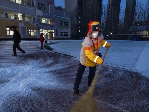 当瑞雪普降,北京陈经纶中学保利小学南校区周边积雪影响出行安全时,值守在常吉路口的邢悦、孙守仙主动加入学校扫雪队伍,在凛冽寒风中与教职工并肩作战,用扫帚清扫出安全通道,成为冬日里守护师生出行的温暖风景线。