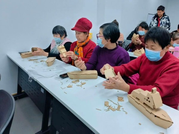 各社区实践站的手工活动同样亮点纷呈。金盏嘉园第二社区开展“逐梦蓝海,巧手造船”活动,工作人员细致拆解船模制作技巧,居民们分工协作、裁剪拼接,一个个形态各异的船模在指尖成型,邻里情谊也在协作中悄然升温;金泽家园社区以螺钿木梳制作为载体,邀请专业老师讲解非遗工艺的历史与技法,居民们专注打磨木梳、镶嵌螺钿,亲手打造兼具实用性与艺术性的非遗作品,让非遗文化在体验中传承;金榆社区的橙桂香薰挂件制作活动则香气满溢,干橙片、桂花与香薰精油的搭配,在居民的巧手下变成精美的挂件,大家交流技巧、分享心得,让温馨气息萦绕现场。