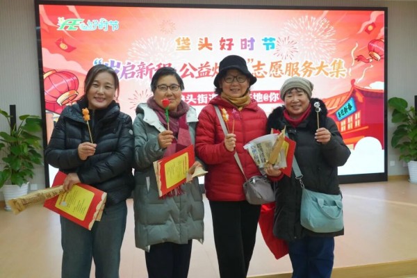志愿服务大集环节同样亮点纷呈。21个社区联合垡头邮局、浙商银行、第二卫生服务中心等辖区单位,精心设置便民服务、文化体验、健康保障、普法宣传等多个特色摊位。公益理发摊位前居民有序排队,享受免费专业服务;义诊现场,内科、中医科医生为居民测血压、查血糖,提供贴心诊疗建议;非遗面人制作、福字拓印、新年剪纸等传统手工艺体验,让居民在动手实践中感受传统文化魅力;成语互动、福气套圈等趣味游戏增添欢乐氛围,“新春映像馆”免费拍摄新年照片、“寄语传情”摊位书写祝福贺卡,定格幸福瞬间、传递美好期许。