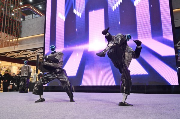 随着动感的音乐响起,由4名G1人形机器人组成的“街舞天团”在京东MALL双井店一层中庭闪亮登场。翻转手腕、扭胯转肩、丝滑滑步、稳定高踢腿……一系列高难度动作行云流水,丝毫不见机械的僵硬感。表演过程中,4名机器人还不断变换编队队形,帅气的外形搭配整齐划一的动作,引得现场观众阵阵欢呼。