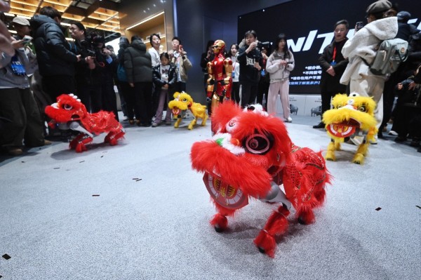 抬脚、扭动身躯、跳跃腾挪、空中后空翻……在京东MALL双井店西门入口处的宇树科技店内,几只Go2四足机器狗纷纷披上鲜艳的红色与黄色醒狮服,变身萌态十足的“赛博小舞狮”。一系列灵动的动作配合与现场观众的趣味互动,将传统非遗文化与前沿科技巧妙融合,让现场氛围愈发热烈。此外,惊喜亮相的宇树科技全新配色R1机器人,更是凭借酷似钢铁侠的酷炫外形,迅速成为社交平台的“新晋顶流”。