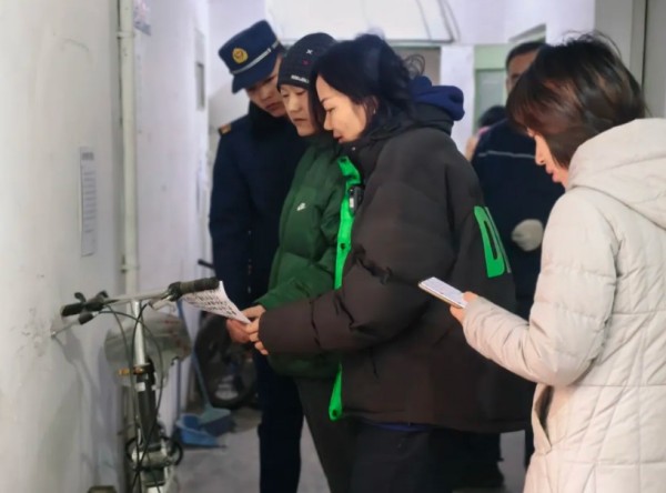 行动开展前,由社区工作人员、民警、消防监督员和网格员组成的宣传小队率先行动,逐层排查楼道堆物与消防设施情况,同时开展入户宣传。工作人员结合真实火灾案例,向居民细致讲解楼道堆物的安全隐患,让“小堆物、大风险”的安全意识深入人心,并张贴通知引导居民主动清理,共同守护“生命通道”。