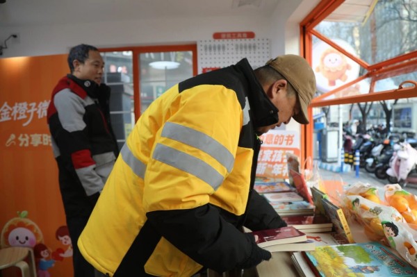 这份千里传情的温暖,源自朝外街道创新打造的“不卖书的书店”。2025年底,这间特殊的书店在橙房子众享驿站亮相,以“闲置图书换爱心脐橙”为核心模式,为居民搭建公益平台,更让快递、外卖等新就业群体能免费领取图书捎给家乡孩子。配套开通的“爱心图书漂流车”专线,精准对接“心愿书单”,让书籍直达需求者手中。短短一个月内,书店已募集图书千余册,送出脐橙数百个,响应新就业群体领书需求超百次。戴红帽阿姨购橙捐善款、外卖员挑书致谢志愿者、七旬姥姥捐赠绘本……一幕幕暖心场景,让闲置书籍重焕生机,让公益精神在辖区传递。