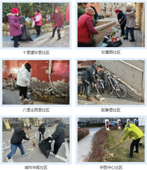 环境整治齐参与,共建美好家园。十里堡东里社区、甘露园社区、八里庄西里社区等多个社区同步开展“环境清洁日”志愿服务活动。志愿者们携带清扫工具,对小区主干道、绿化带、单元门口的落叶、纸屑、生活垃圾进行全面清理,以“不怕苦、不怕累、不怕脏”的奉献精神,用实际行动为居民打造整洁舒适的居住环境。