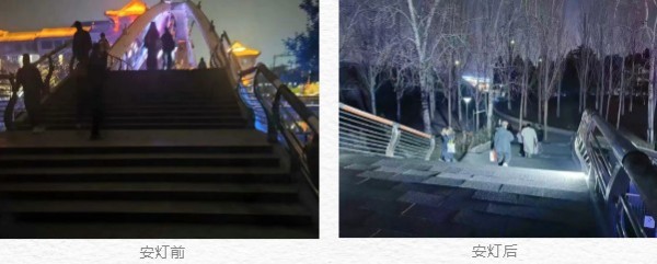 在民生保障一线,高效响应成为温暖底色。西店社区的通惠河畔同心桥作为连接社区与地铁站、产业园区的核心枢纽,日均通行超万人次,此前因无照明设施、台阶密集,夜间通行安全隐患突出。社区党委启动"闻诉即动"机制,网格长实地核查后迅速"吹哨",联动区水务局、乡接诉即办专班、环境办及物业等多方力量,确定"北岸引电、凌晨错峰施工"方案。施工团队选用适配潮湿环境的防风雨LED路灯,避开通勤高峰仅用两天便完成3盏路灯、2盏地灯的安装,同时建立"每周联合巡检"机制保障设施长效运行。如今,明亮的灯光不仅照亮了居民的夜行之路,光影倒映河面更成为辖区夜景新亮点。