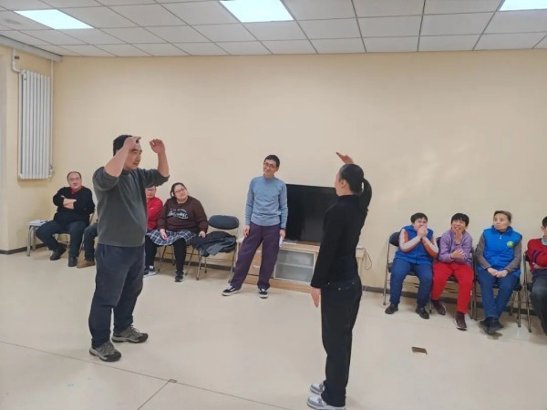 文体疗愈活动中,助残服务更注重能力的重建与个性化需求。手语舞蹈课上,《感恩的心》的旋律缓缓流淌,老师们握住学员的手,带领大家一遍遍重复动作,从机械比划到连贯舒展,从表情紧绷到面带微笑,“爱”与“心”的手势在掌心传递着温暖与力量。太极扇课堂则践行“因人施教”理念,针对肢体活动受限的学员,重点训练上半身动作舒展与扇法精炼;对于听力障碍学员,通过清晰的手势示范、触觉提示和同伴带动,让每个人都能在自己的节奏中感受太极的韵律与力量。