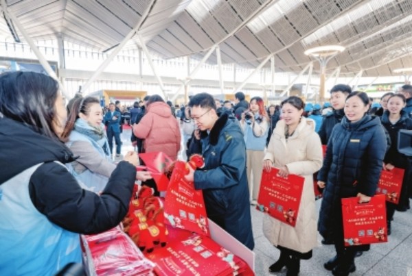 “太惊喜了!完全没想到在车站候车室能现场观看书法家写福字、写春联,还能免费领一份带回家,这红纸上的‘福’字又大气又喜庆,揣着这份满满的暖意和福气上车,归途都变得更温暖了!”旅客张女士举着刚领到的福字,开心地说道。