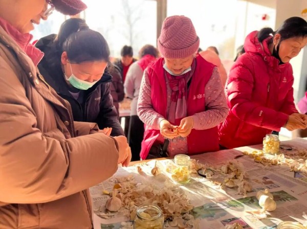 腌腊八蒜是腊八节的经典习俗。望京西园四区南社区、夏都雅园社区等多个社区同步开展腌腊八蒜主题活动。社区工作人员精心筹备了优质大蒜、米醋和密封罐,志愿者化身民俗讲解员,向居民详细讲解腊八节的由来及蒜瓣挑选、去皮清洗、配比腌制等技巧。活动现场热闹非凡,老党员分享传统腌制经验,青少年踊跃体验民俗乐趣,大家相互协作、交流心得,一罐罐晶莹剔透的腊八蒜,承载着对新春的美好期盼,也让邻里情谊在协作中愈发深厚。