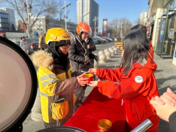 针对行动不便的高龄老人、独居老人等特殊群体,大山子、大山子北里、银河湾社区组建“暖心小分队”,将热气腾腾的腊八粥上门送到老人手中。工作人员详细询问老人的生活起居和身体状况,叮嘱冬季保暖与用电安全,一句句温馨问候让老人们在寒冬中倍感关怀。而在万红路社区“全时驿站”和中北路社区携手共建单位新辰里商场开展的活动中,外卖骑手、快递员等新就业群体也收到了暖心腊八粥。“平时跑单忙得顾不上吃饭,今天能喝到热乎的腊八粥,心里特别暖。”一位外卖小哥的感慨,道出了新就业群体对这份关怀的珍视。