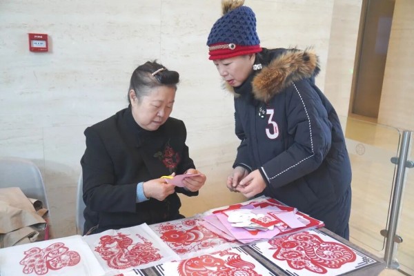 非遗剪纸环节让大家沉浸式领略了传统艺术的独特韵味。朝阳区民间文艺家协会副主席、“孙氏剪纸”第三代传承人孙二林带来了福字、游鱼、骏马等寓意吉祥的剪纸作品,线条流畅、造型精美。“骏马呼应马年新春,鱼象征年年有余,剪纸是藏在指尖的年俗记忆。”孙二林老师先为大家解读作品的文化内涵,随后手持剪刀现场示范,指尖翻飞间,普通红纸便化作灵动图案,精湛技艺引得阵阵赞叹。“能让更多人近距离接触非遗、爱上非遗,让传统技艺在新时代焕发生机,就是我最大的心愿。”孙二林老师欣慰地说。