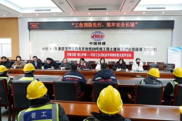 岁末年终,年终工资结算进入集中高峰期,工程建设领域农民工工资支付、工伤保险参保等问题成为群众关切的焦点。为切实筑牢农民工权益保障防线,持续深化工伤保险政策普及覆盖面,近日,朝阳区呼家楼街道劳动科联合街道司法所,携手京鲁法律专家委员会,主动下沉服务重心,走进地铁28号线01合同段施工现场,开展“安薪朝阳”专项普法宣讲活动,为一线农民工送上一份实用贴心的“法治暖心包”,用法治力量守护劳动者“钱袋子”与“安全线”。
