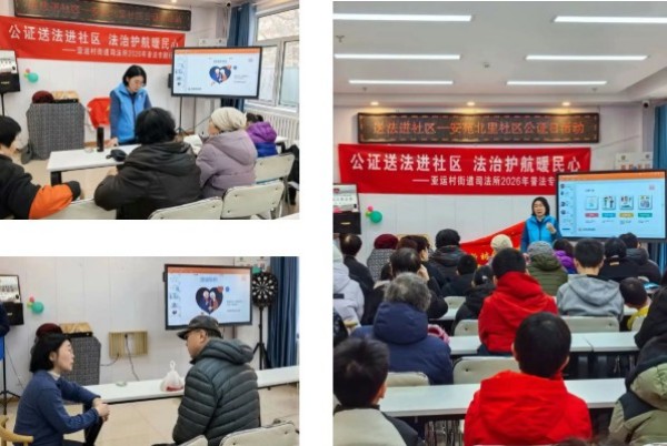 1月30日,朝阳区亚运村街道司法所"社区公证日"首场迎新春普法活动在安苑北里社区成功举办。活动以"公证便民、普法惠民"为核心,将专业公证服务与法治宣传深度结合,精准对接居民法律诉求,为社区居民送上了一场接地气、实用性强的法治盛宴。