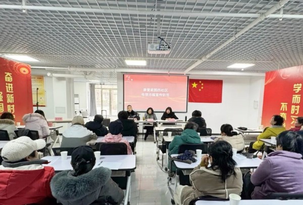 科普宣传与安全守护同步推进。针对不同群体需求,各社区精准发力:康营家园二社区开展寒假安全宣传,通过视频观看、知识讲解,帮助孩子们掌握避险技巧;康营家园四社区邀请民警开展反诈讲座,详解诈骗手法,提升居民防范意识。
