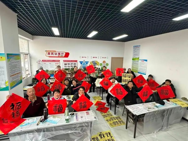 常营福第社区的“福聚邻里春满福第”新春送福联欢活动,环节丰富多元。社区民警、书法老师及爱好者共同参与,铺红纸、研浓墨,将对平安顺遂、美好生活的向往融入笔墨。亲子家庭驻足观赏,家长借机为孩子讲解春联文化;老年居民与邻里畅谈新春期许,现场其乐融融。活动尾声,社区工作人员还将春联、福字送到高龄老人家中,让暖意与祝福覆盖社区每个角落。