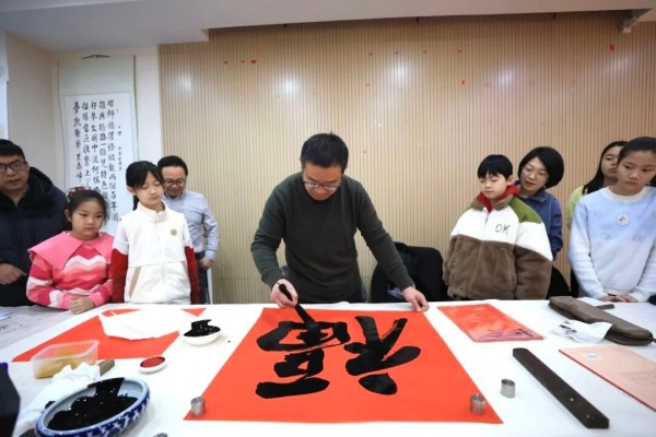 与此同时,四区六街的书法爱好者同步创作春联与福字,现场“福字墙”铺满地面,红色暖意扑面而来。街道特邀史超齐劳模摄影工作室全程记录,用镜头定格下老少携手书写、以笔传情的温馨画面,留存下文化传承的生动瞬间。