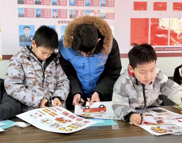 在互动环节,孩子们不仅踊跃提问,还亲自试穿救援服、登上驾驶室,化身“小小消防员”沉浸式体验消防工作。此外,活动还设置了创意手工制作环节,孩子们通过裁剪、粘贴消防主题贴画,制作出一幅幅色彩鲜艳的立体手抄报,在动手实践中进一步加深了对安全知识的理解。