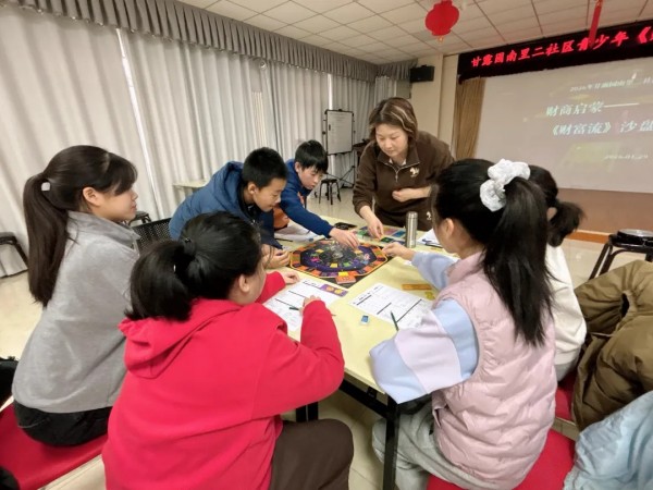 高碑店地区甘露园南里二社区则以沉浸式游戏体验为载体,开展了一场财富流沙盘活动,帮助辖区青少年从小树立正确的价值观、财富观与理财观。