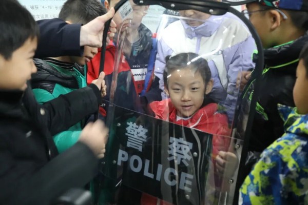 在地下轨道探索环节,孩子们走进宋家庄地铁站,开启了一场别开生面的安全之旅。他们围在安检机旁聆听原理讲解,手持探测器体验“小小安检员”的角色,在值班站长的指引下读懂站厅内的疏散标识。消防课堂上的“提、拔、握、压”四字口诀,被孩子们反复模仿记忆。最令他们惊喜的,是与警犬“佩奇”的零距离互动,亲眼见证这位特殊“安检员”在巡逻护卫中的本领,让反恐防暴知识变得生动可感。