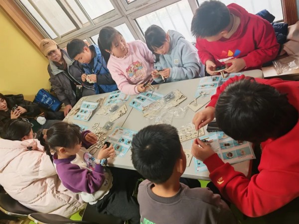 活动伊始,志愿者老师用通俗的语言,揭秘“小夜灯听懂人话”的奥秘,瞬间点燃孩子们的探索欲。在工作人员和志愿者的指导下,孩子们对照说明书有条不紊地裁剪、组装、接线、调试,一盏盏能“听懂话”的魔法小夜灯陆续诞生。