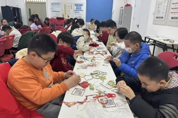 在随后的手工环节,青少年们全神贯注,化身小小手艺人,投入到风铃的制作中。裁剪、穿缀、系结、固定,每一个步骤都小心翼翼,偶尔相互交流技巧、分享创意,现场欢声笑语不断,暖意融融。