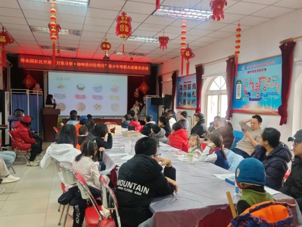 环保理念也在这个寒假生根发芽。秀水园社区的青少年们开展了一场别开生面的“咖啡渣回收利用”活动。他们学习咖啡渣的妙用,并将其制作成精美的香牌,用实际行动践行“变废为宝”的绿色生活方式。而在八南社区,一场融合了手工与音乐的活动热闹非凡。孩子们在制作万年历笔筒的过程中锻炼动手能力与空间思维,随后又在社区乐队悠扬的演奏中,感受音乐带来的心灵触动。